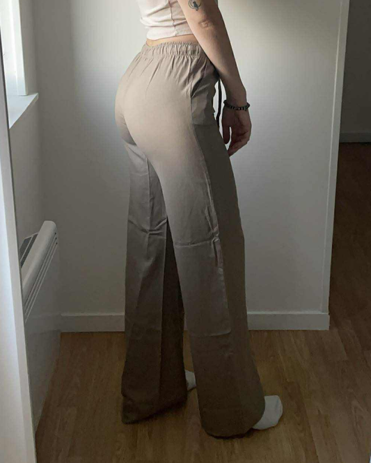 Pantalon en lin taupe ultra long