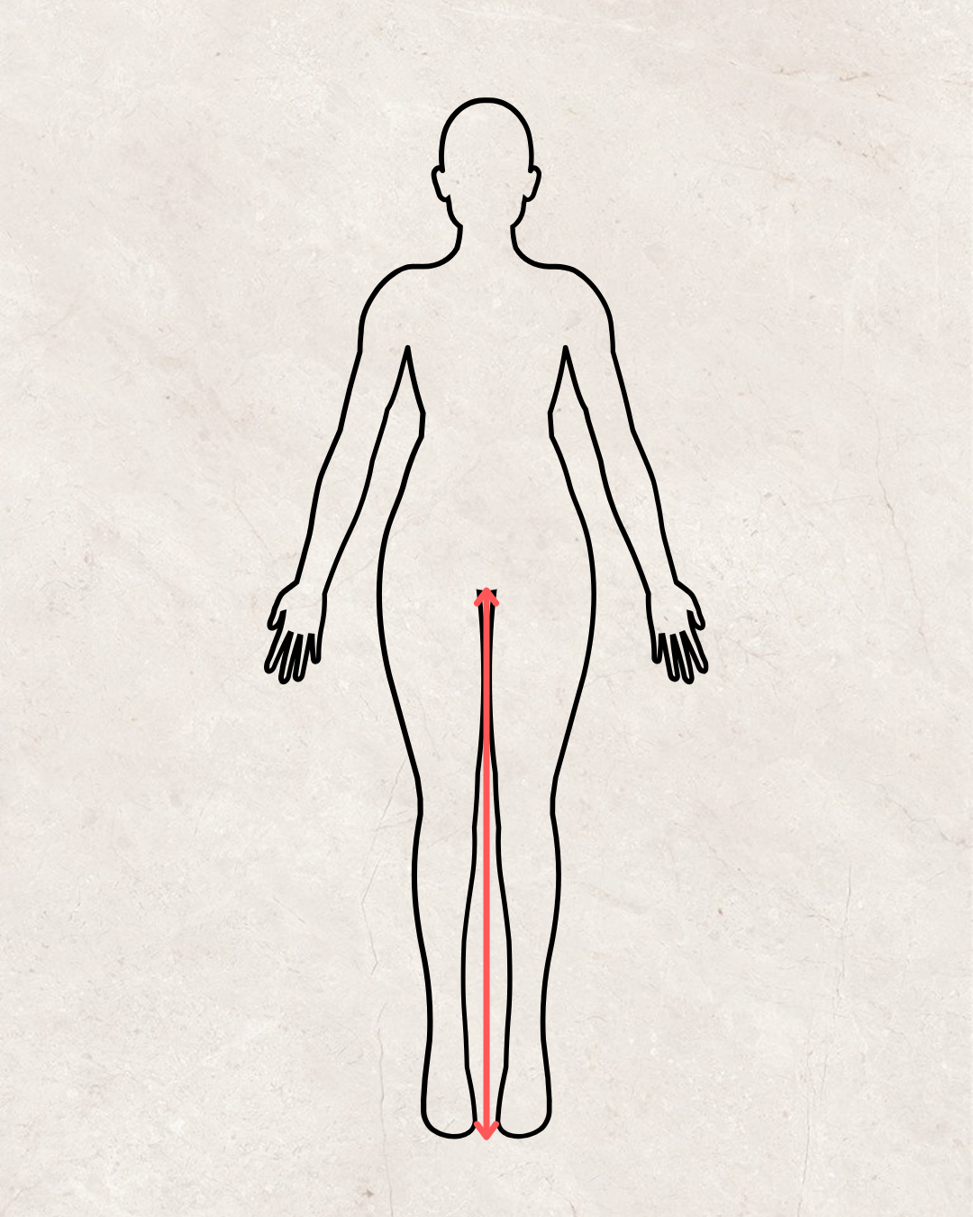 👉 Mesurez votre longueur d'entrejambe en partant du haut de l’intérieur de la cuisse jusqu’à votre pied, le long de la jambe.